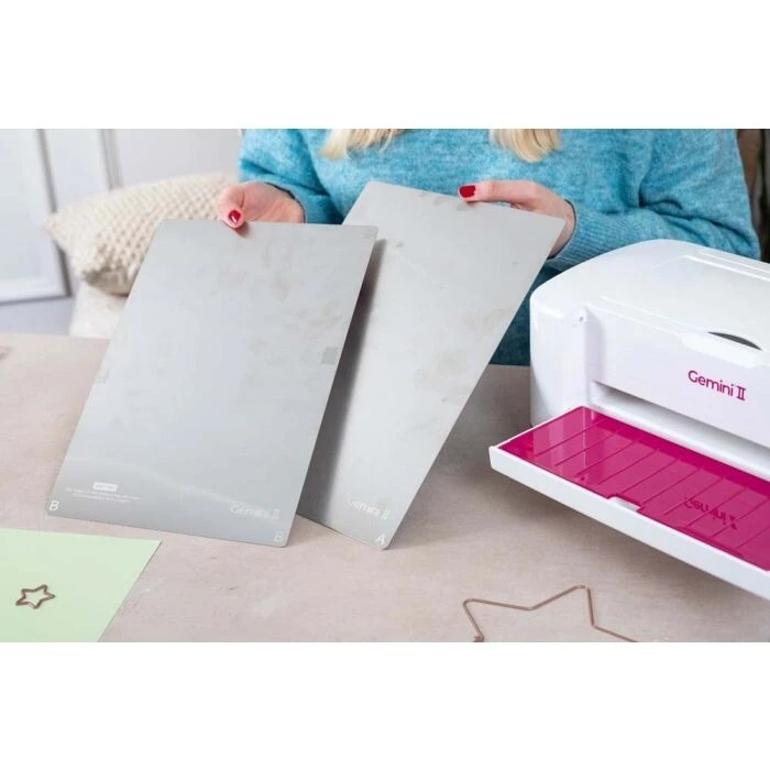 Dieses Paket enthält 2 A4-Textilschneideplatten aus Metall für den Gemini II